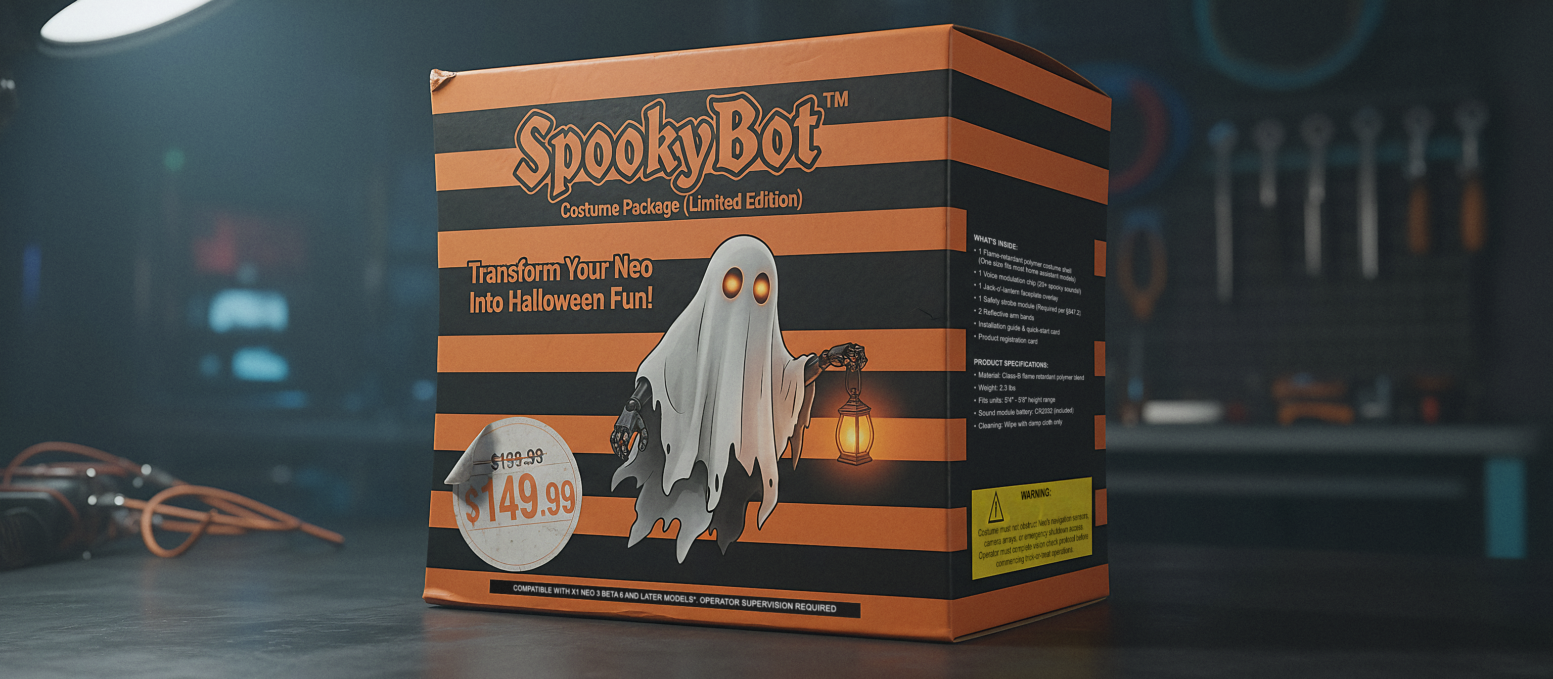 Here’s what I wasn’t expecting: a neighborhood street absolutely packed with robots in costumes, bumping into each other like a very expensive game of bumper cars, while the actual houses are dark and quiet. Found one of these SpookyBot1 costume packages torn open on someone’s lawn, next to a charging station.